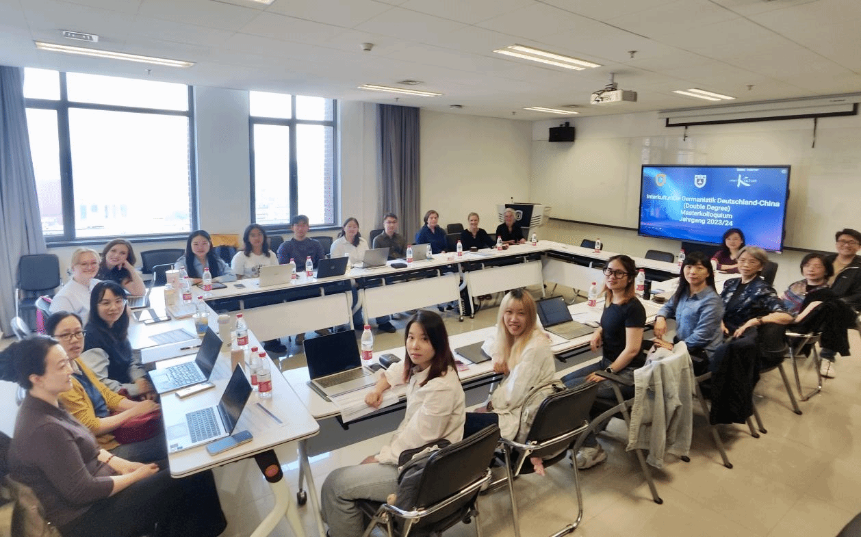 本次访问行程紧凑,内容丰富。5月11日至12日,三位专家参加了在我校举办的“中德跨文化日耳曼学硕士双学位论坛”。论坛由北京外国语大学、南京大学与德国哥廷根大学联合主办,首日由南京大学德语系主任陈民教授与我院副院长张晓玲教授共同主持,来自三校的多位学生分享了他们在跨文化理解领域的研究成果。次日由哥廷根大学系主任Andrea Bogner教授与我院周海霞教授联合主持,学生报告重点聚焦于跨文化传播实践。在本次论坛中,三校师生齐聚一堂深入探讨,充分展示了“Asia-Link”项目在培养全球化视野人才方面的阶段性成果。