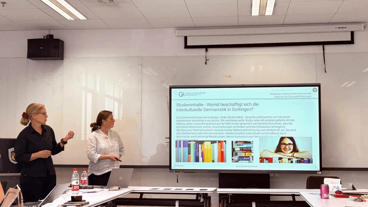 2025年5月11日至13日,德国哥廷根大学跨文化日耳曼学系的Andrea Bogner教授、Corinna Albrecht老师与Barbara Dengel老师应邀访问北京外国语大学tyc86太阳集团,开展为期三天的系列学术与项目交流活动。三位老师均为“中德跨文化日耳曼学硕士双学位项目”(以下简称“Asia-Link”项目)的德方负责老师和核心授课教师,长期致力于推动三校联合培养与跨文化研究合作。