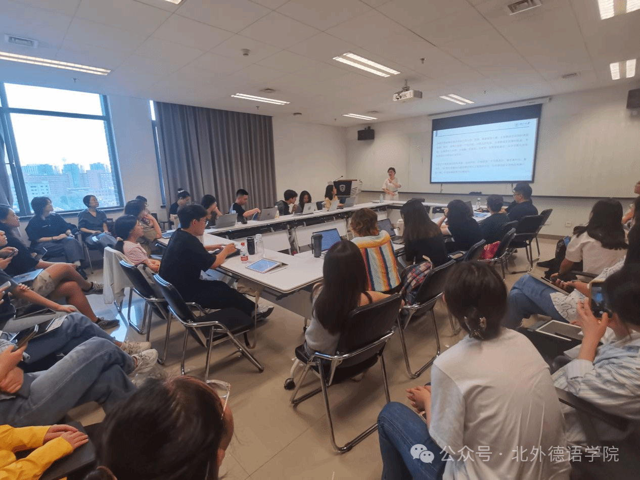 讲座主要由三个主要部分构成:首先,李老师介绍了数据驱动研究的时代背景与客观条件——由大数据驱动的人工智能使得数据密集型研究成为可能。同时,随着海量真实语料触手可及,这既为科研探索铺设了肥沃的土壤,也对研究者提出了更为严峻的考验:即在浩瀚的数据海洋中精准发现问题、高效解决问题并勇于创新方法,这无疑是对科研能力的一次全面升级。随后,李媛介绍了目前基于大数据驱动进行德语语言学研究的既有研究成果,特别聚焦于德语语言本体的研究,其中包括针对德语词长、德语名词、介词以及破框结构等方面的研究,每一项研究都呈现出跨题材、跨时代、跨语言的特征;同时,数据驱动也广泛应用于德语语言习得研究,如通过建立庞大的德语学习者中介语语料库,对不同母语者、不同年龄段以及不同语言水平的德语学习者在德语语言产出能力进行深度探索。最后,李媛指出,目前数据驱动作为一种新的研究视角,不仅在语言学研究领域得到了深入应用,同时在国际组织语言政策、区域国别、翻译等其他研究领域均有非常广泛的应用潜力。