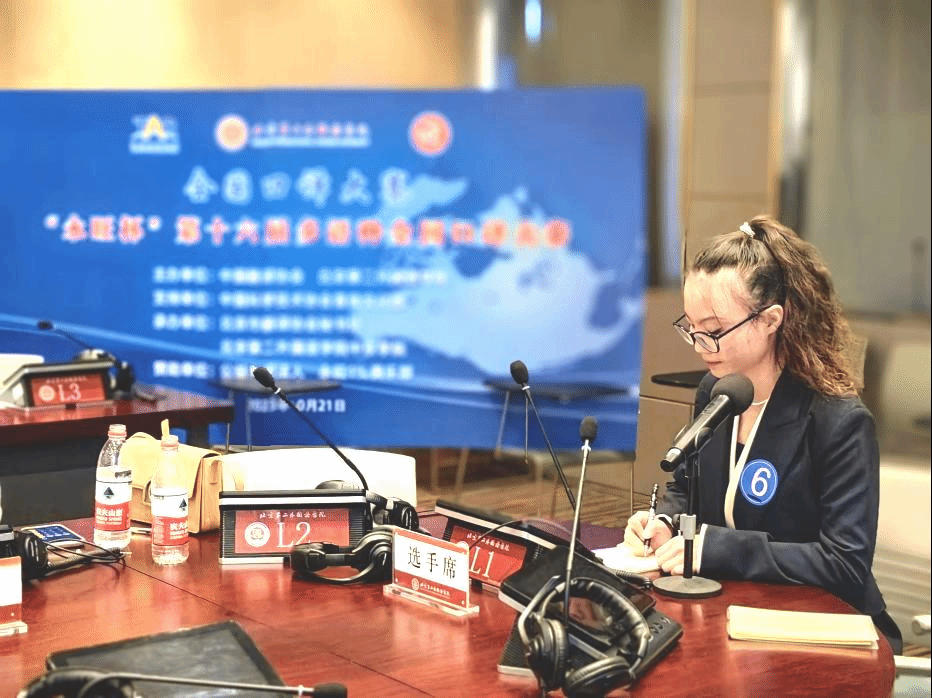 德语学院翻译硕士(德语口译)专业2023级学生艾丽娜代表北京外国语大学参赛,在复赛和决赛中均取得了第一名的成绩,最终在决赛中获得德语交传组一等奖。本次参加德语组复赛的共有全国十五所高校的选手,来自北京大学、中国人民大学、对外经济贸易大学、上海外国语大学、北京第二外国语学院及我校的选手最终进入德语交传组决赛。此次参赛由我院教师冷慧博士指导带队。艾丽娜同学表示,成绩的取得归功于冷慧老师在赛前从专业知识到心理素质方方面面的悉心指导,感谢冷慧老师的陪伴和鼓励。