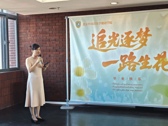 她深情回顾了从北外毕业后三次不同职业跨越式转型的经历,凝练出北外人特有的使命感、全球观与思辨力。她寄语毕业生以语言“元宇宙”校准世界脉搏,以终身学习锚定跨界价值,以向上向善温润文明,勇担北外人的时代使命。