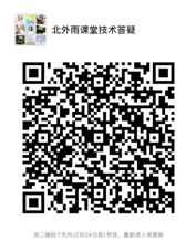 如有任何技术问题,可微信扫描以下二维码加入“北外雨课堂技术答疑”微信群进行咨询(二维码7天内有效,如过期请联系本单位研究生教学秘书帮助进群)。
