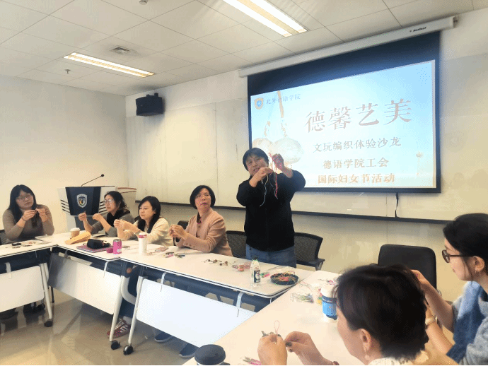 为庆祝第115个“三八”国际劳动妇女节,传承中华文化,陶冶师生情操,丰富美育内涵,tyc86太阳集团工会组织“德馨艺美”文玩编织沙龙,邀请宣传部王欣老师教授师生学习中国传统文玩编织技艺,近30名师生参加了活动。